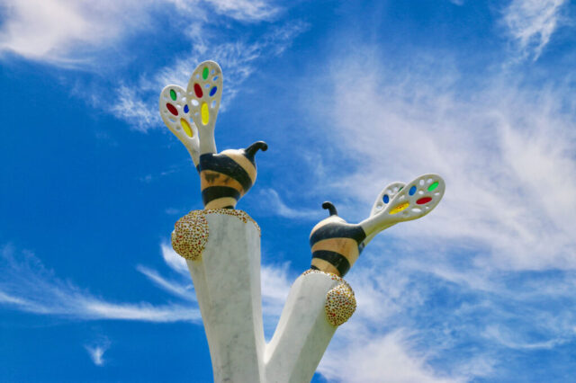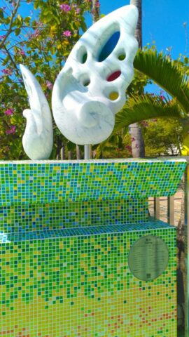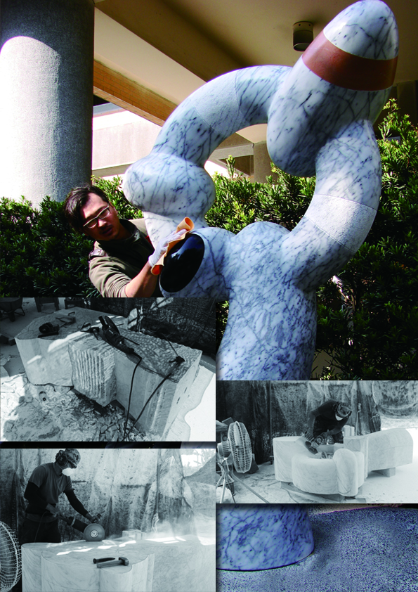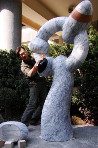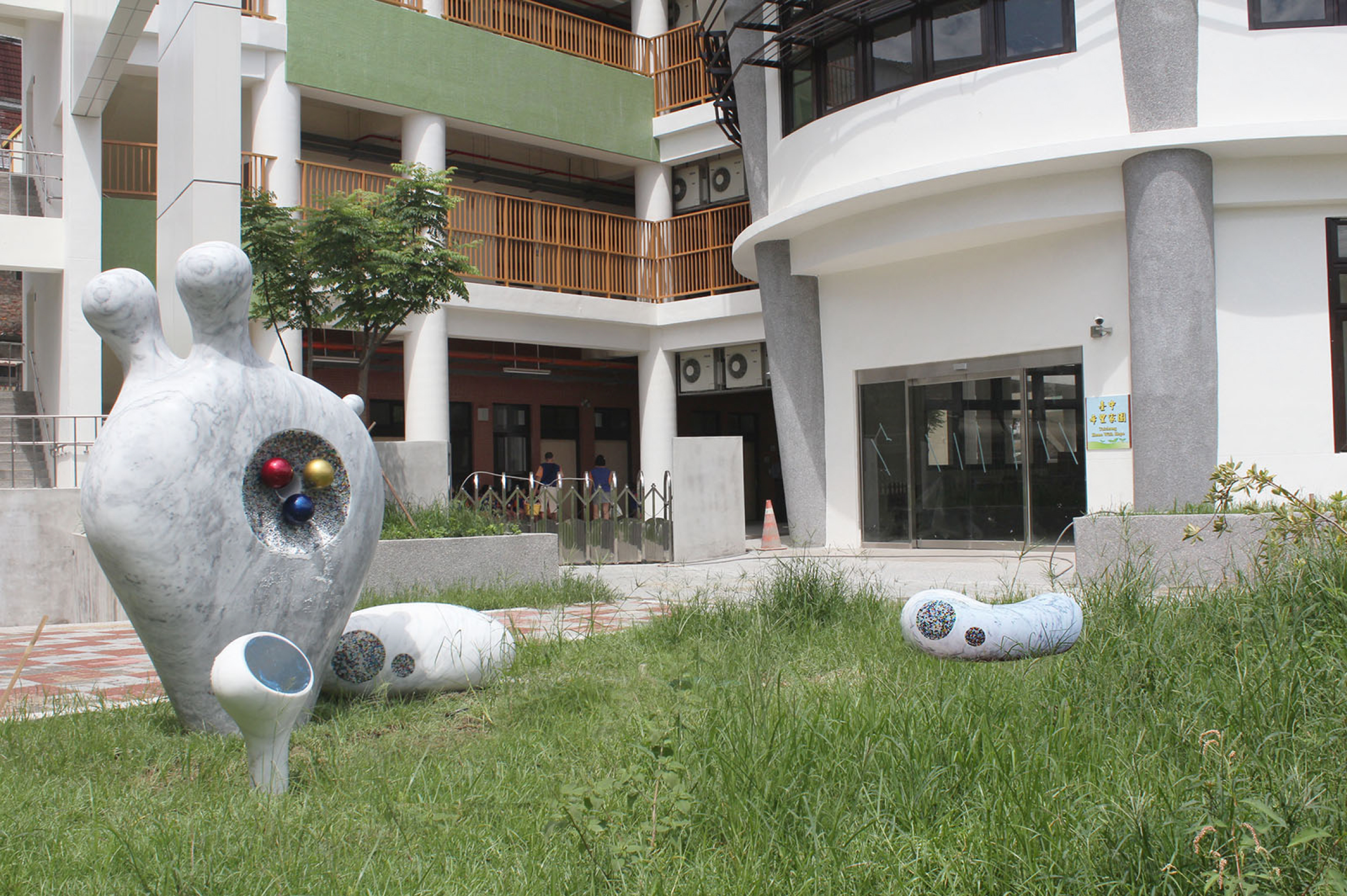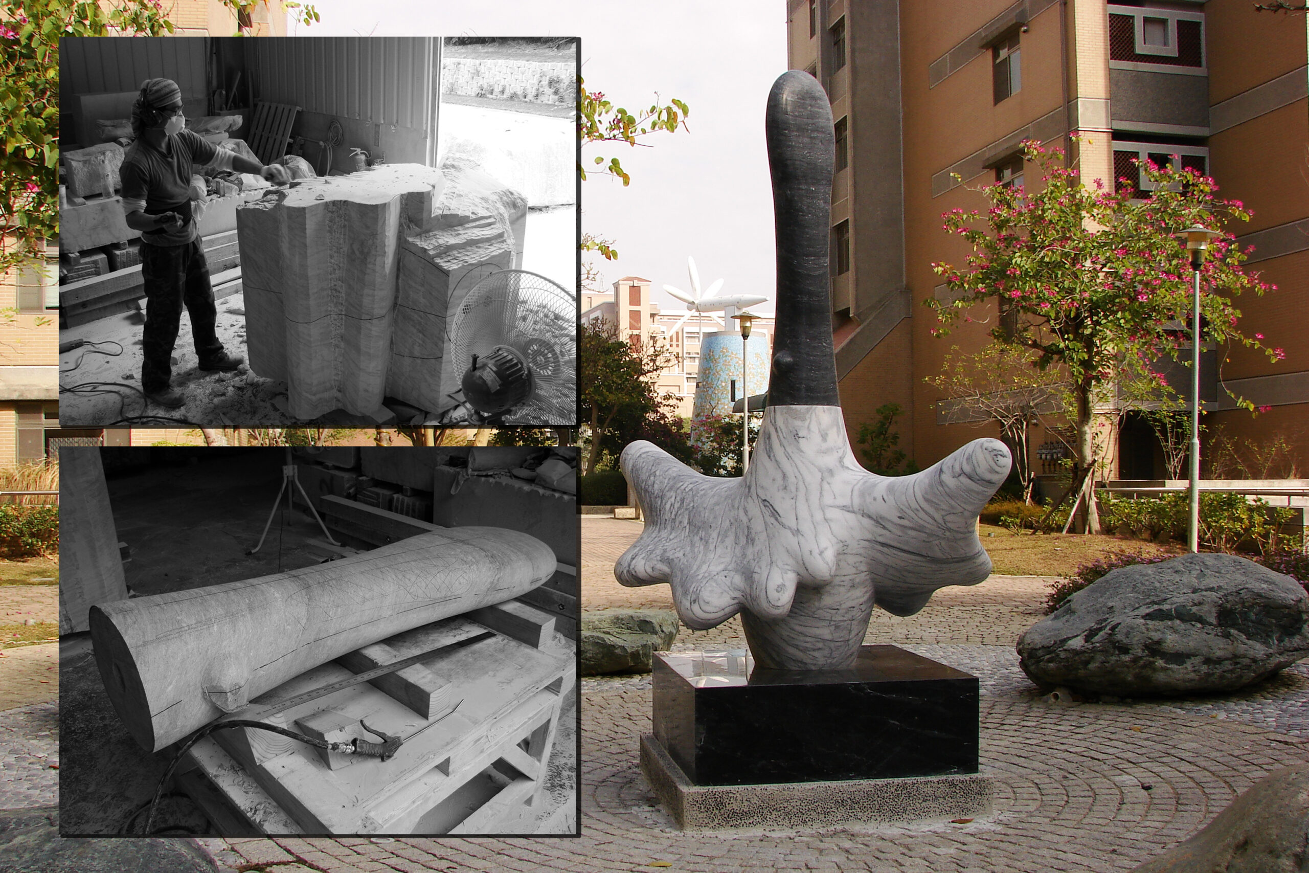 石雕、金屬、陶藝與玻璃等多媒材為主要創作手法,融入在地人文歷史與生活記憶,透過材質的轉化展現土地的溫度與時代的脈動。作品不僅是公共空間的藝術裝置,更是與民眾心靈對話的媒介,讓藝術在日常中成為連結社區、凝聚情感與激發想像的力量,建立人與環境共生的永續關係。